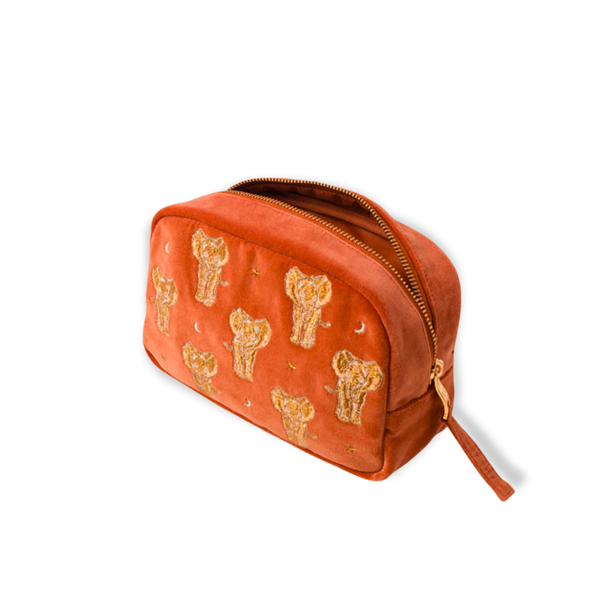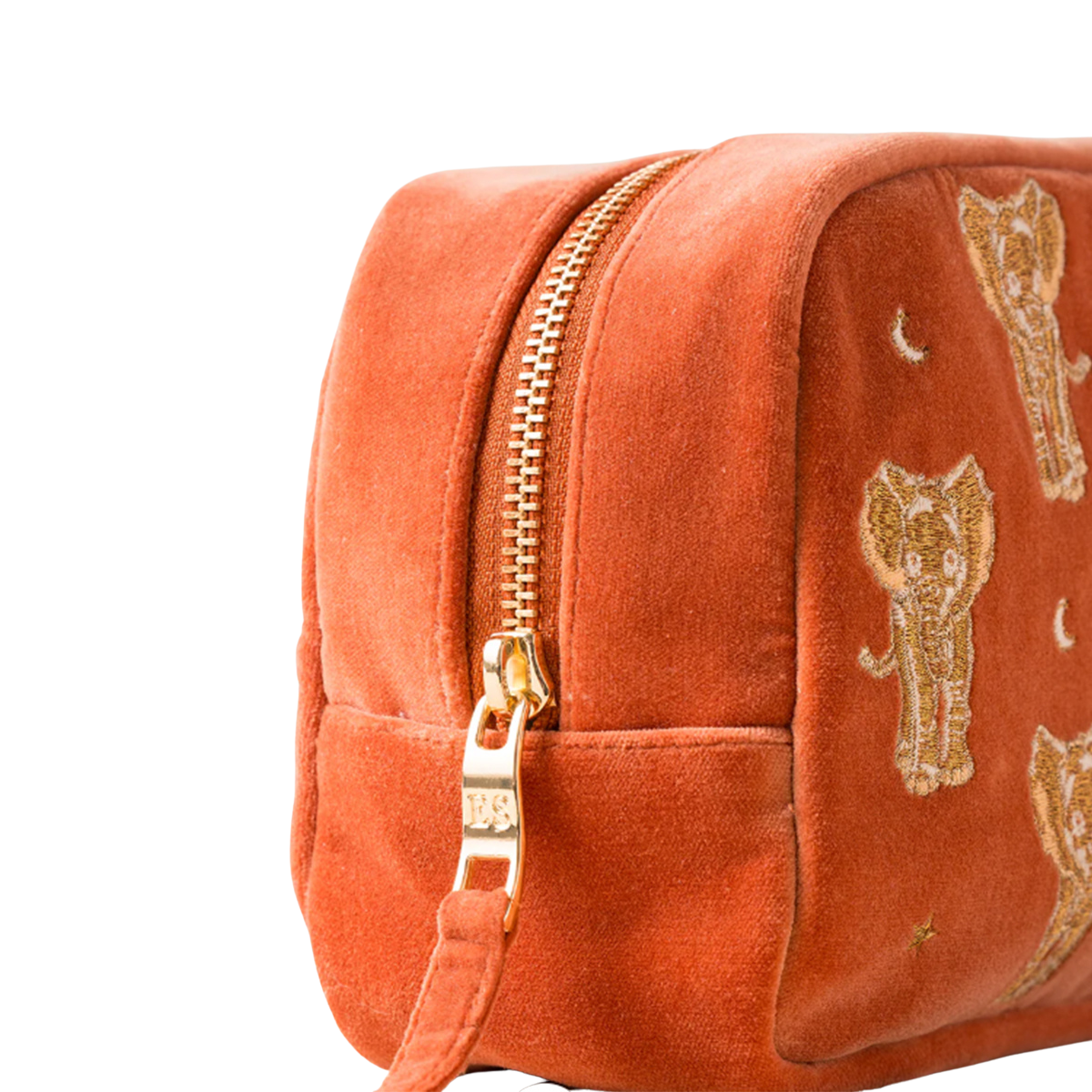 Elizabeth Scarlett's beloved elephant design is reimagined against rich terracotta velvet to bring a touch of sunshine and joy to your everyday.